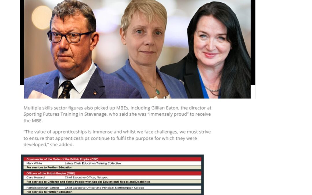 Press Clipping | King’s Birthday Honours: Who received what in FE and skills? by Angela Pask | Jun 26, 2023 | News